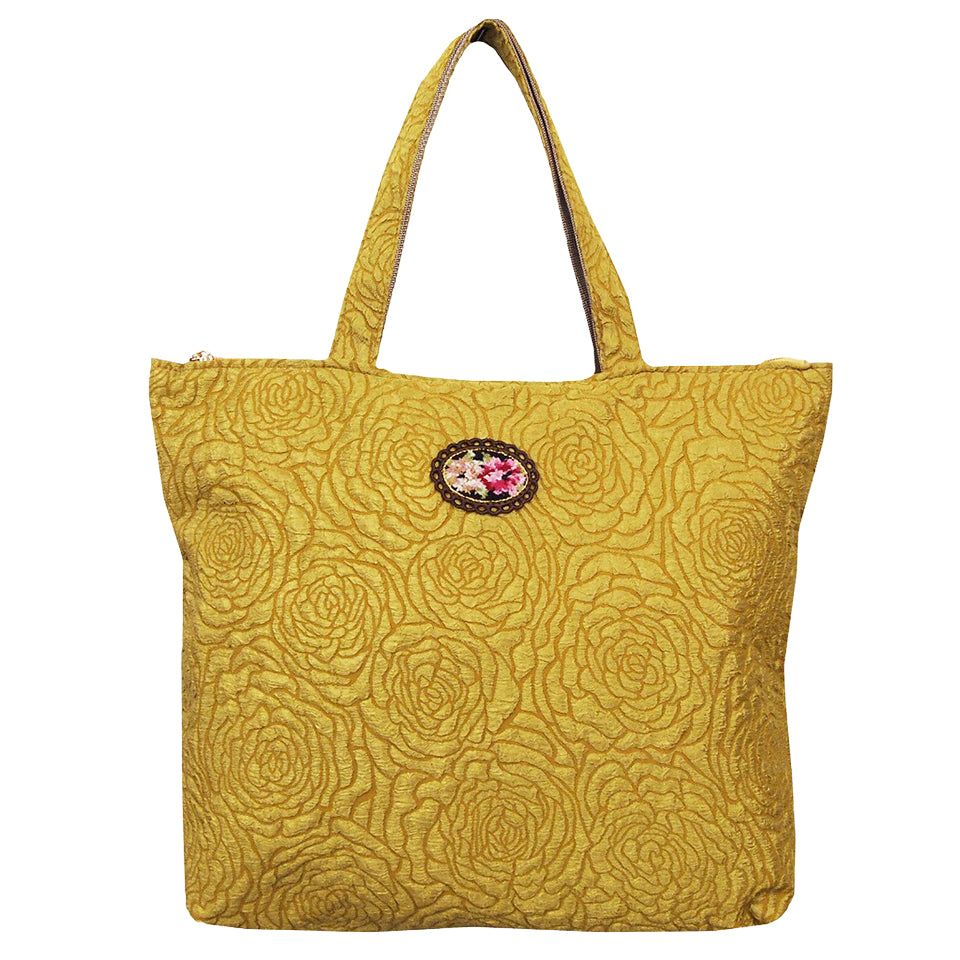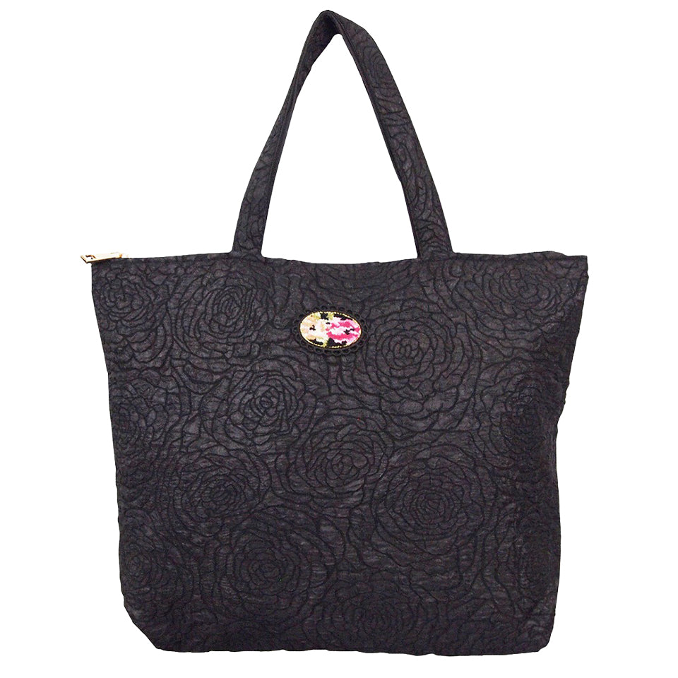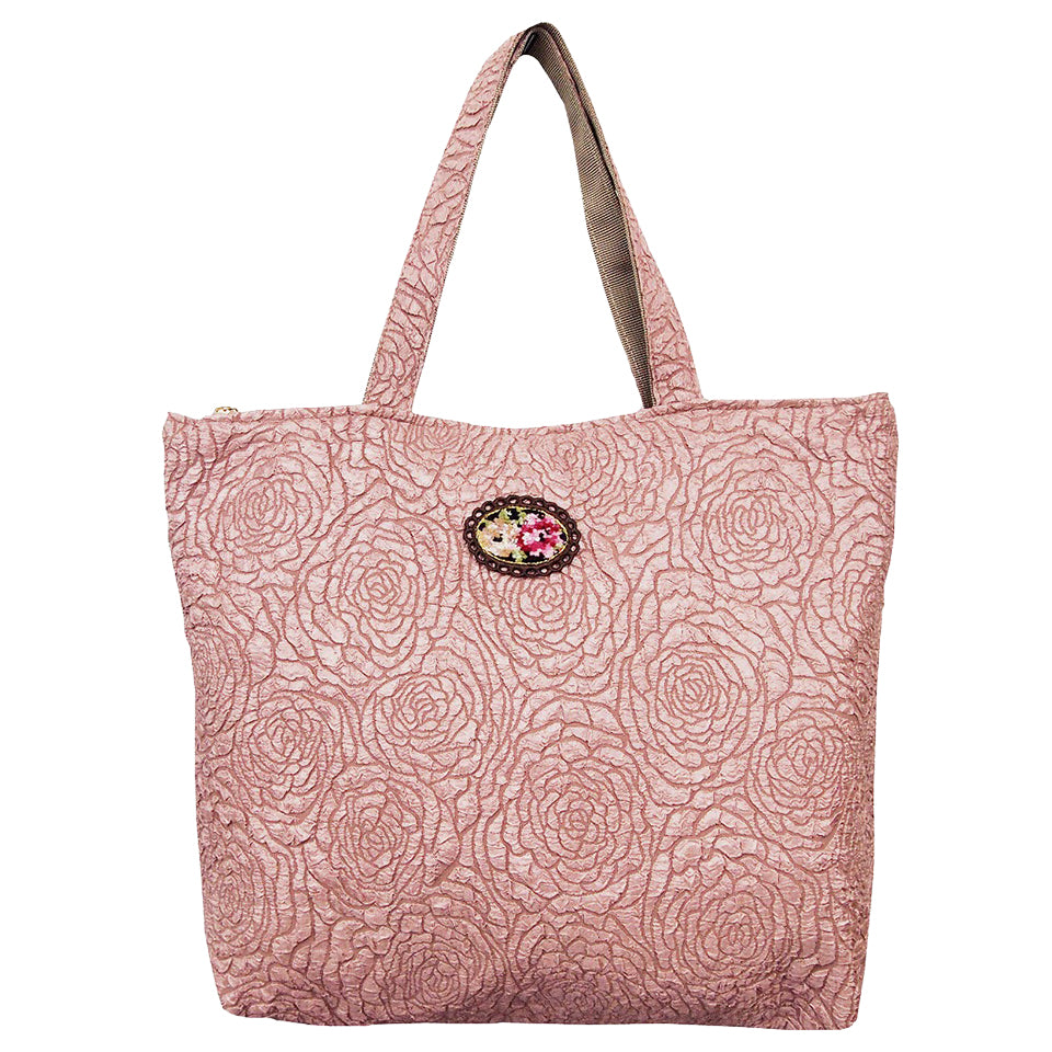 光沢のあるポリエステル生地にローズ柄を型押しした立体的で高級感のある生地を採用!