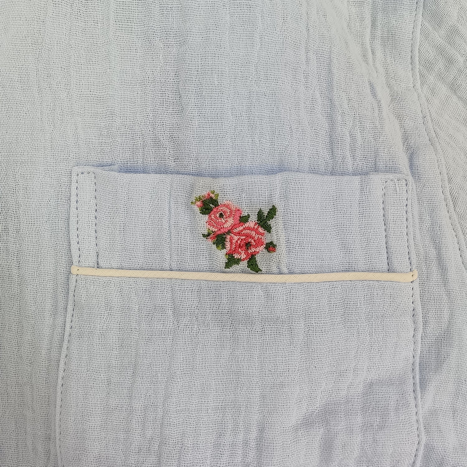 One-point embroidery with a rose pattern on the chest pocket!