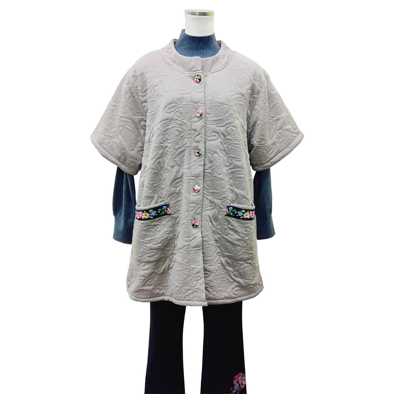 裏地はフリース生地で中綿入り!五分袖なので肩も暖かく家事もはかどります♪