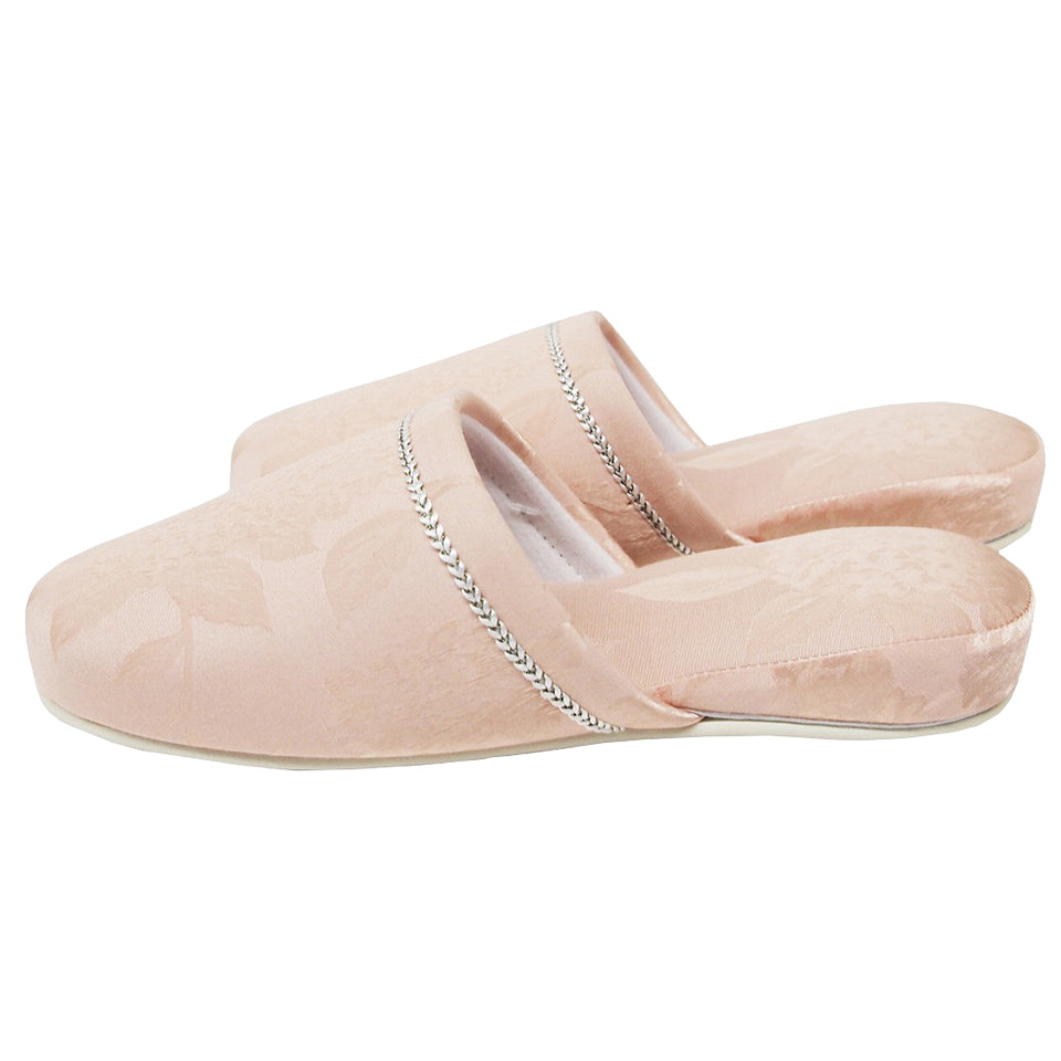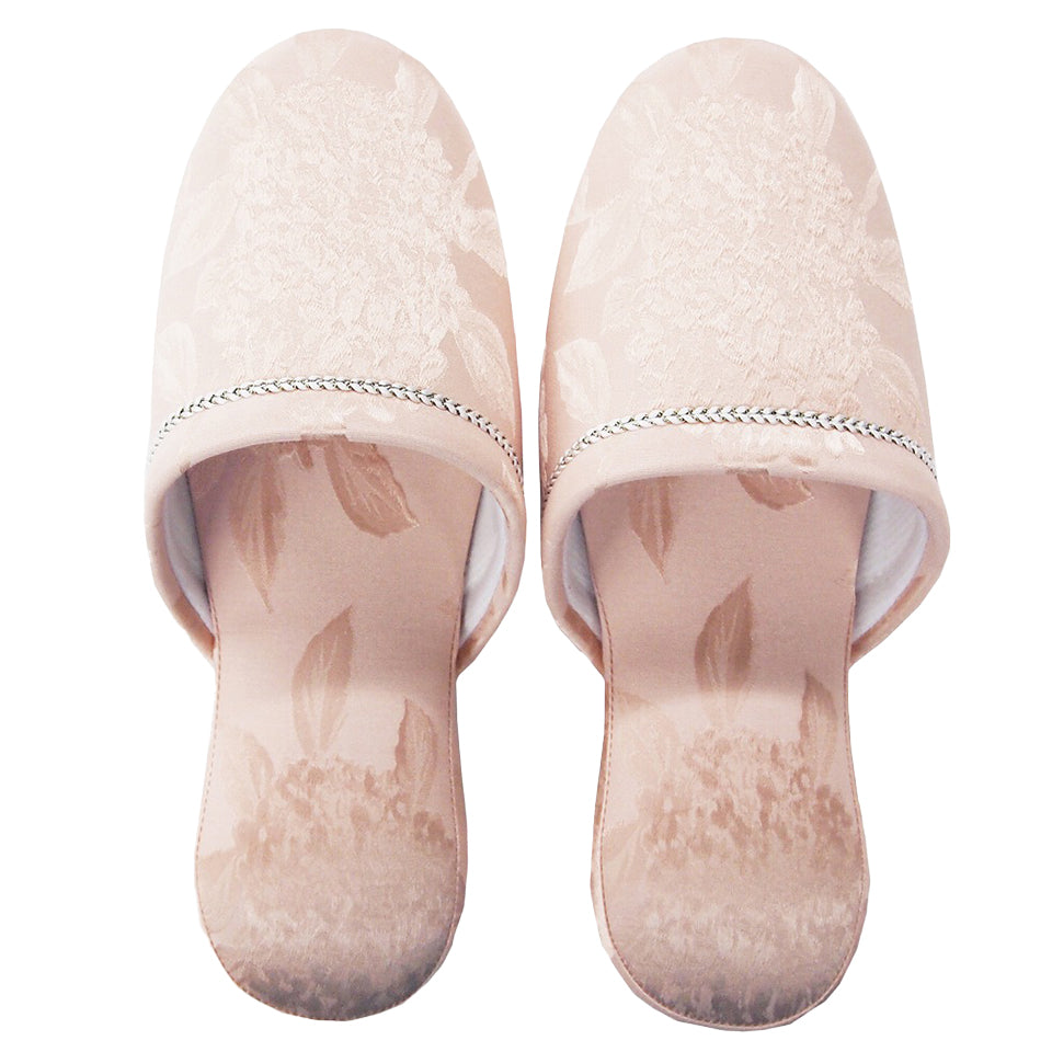 花柄ジャカード織の上品なお色味のスリッパです♪来客用にも最適!【サイズ】フリー(24~26cm)ヒール高さ3cm【重さ】(片足)105g【素材】〈本体〉ポリエステル〈底材〉合成皮革【中国製】