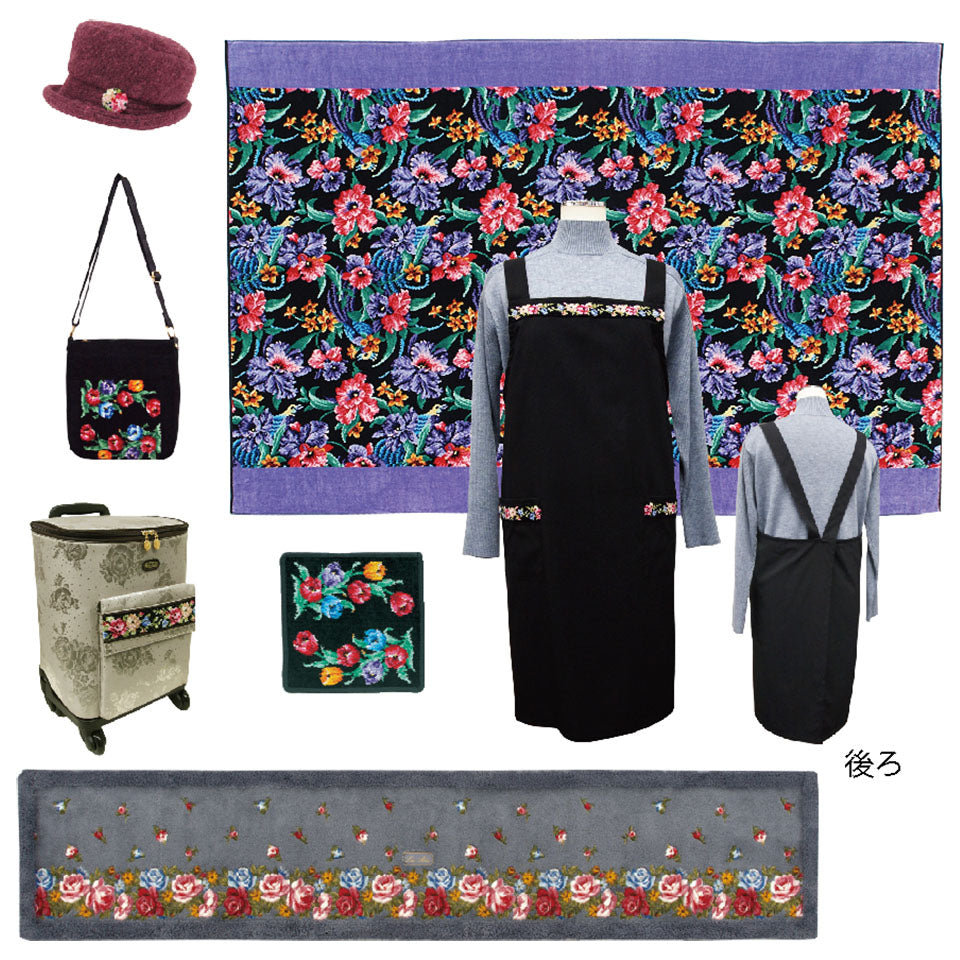 人気の4輪カートに華やかなドイツ製シェニールジャンボタオル、チューリップ柄のショルダーバッグと同柄の大判ハンカチ、おしゃれなパープルのハット入り!