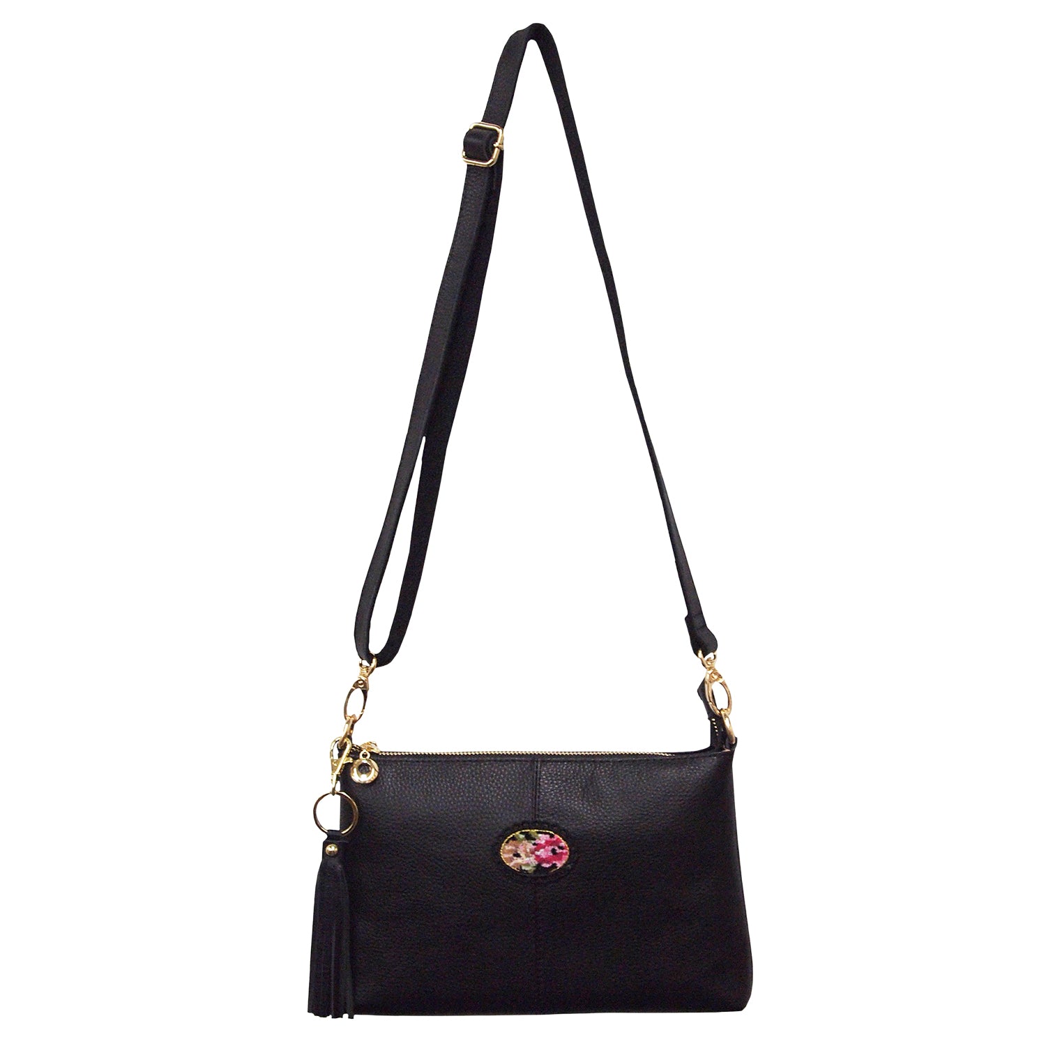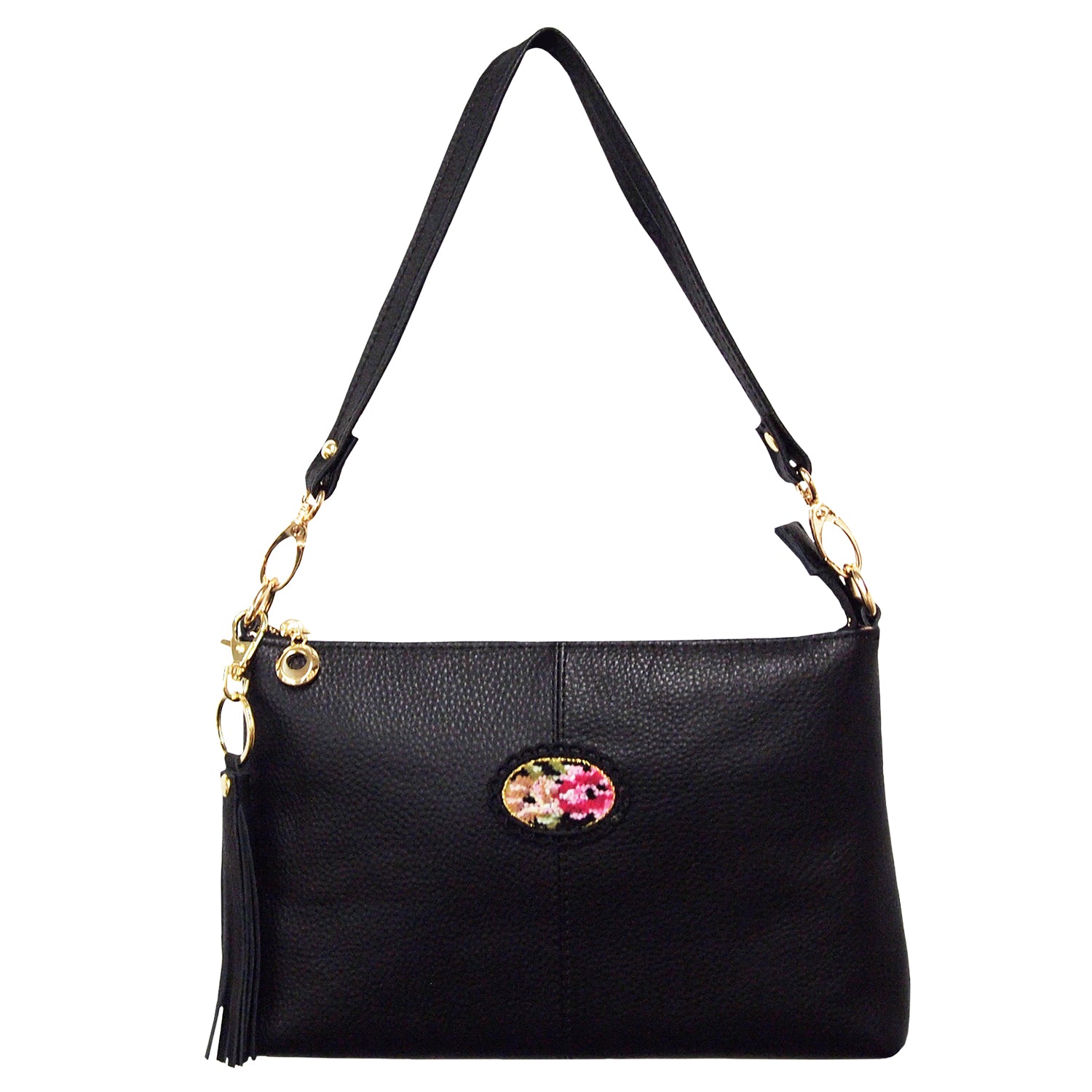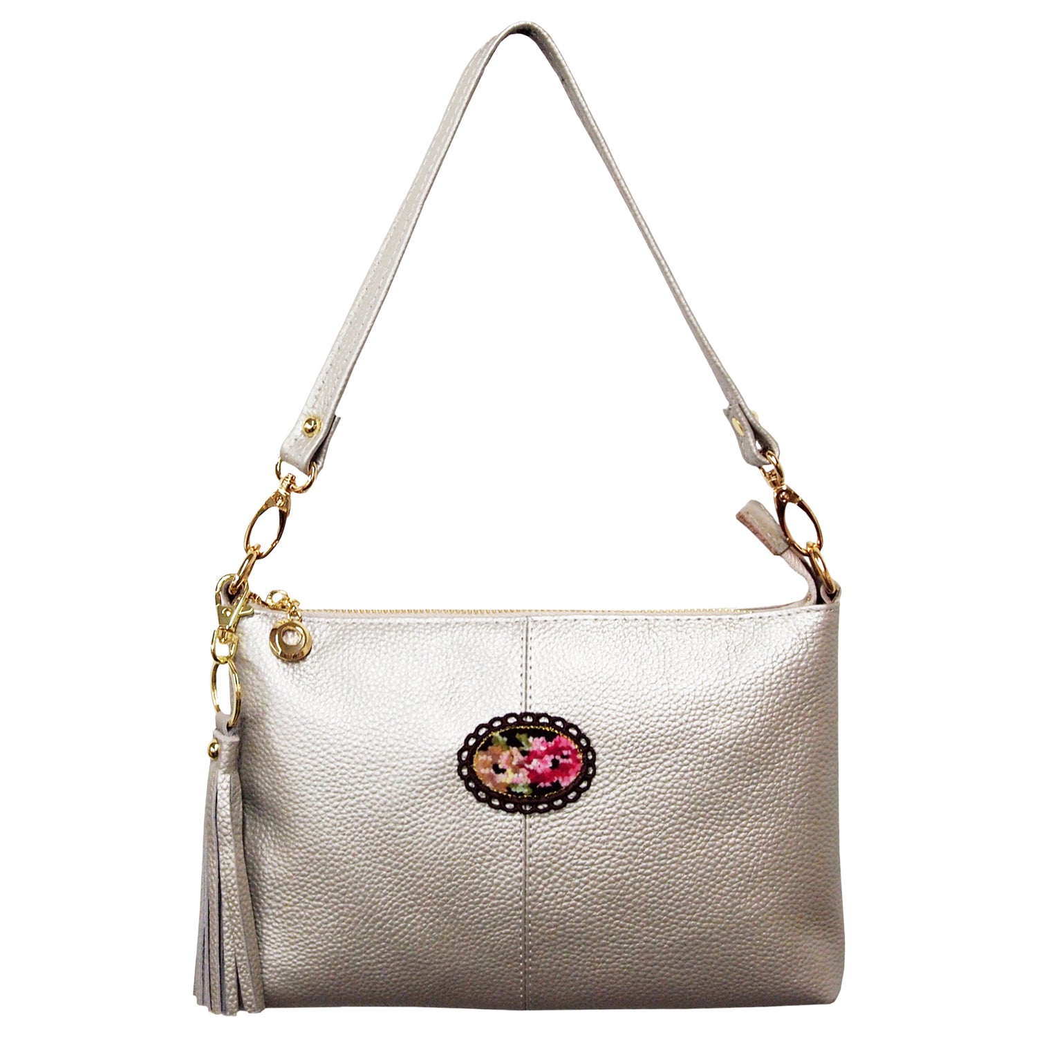 ゴールドの金具使いが華やかな牛革ショルダーバッグ!