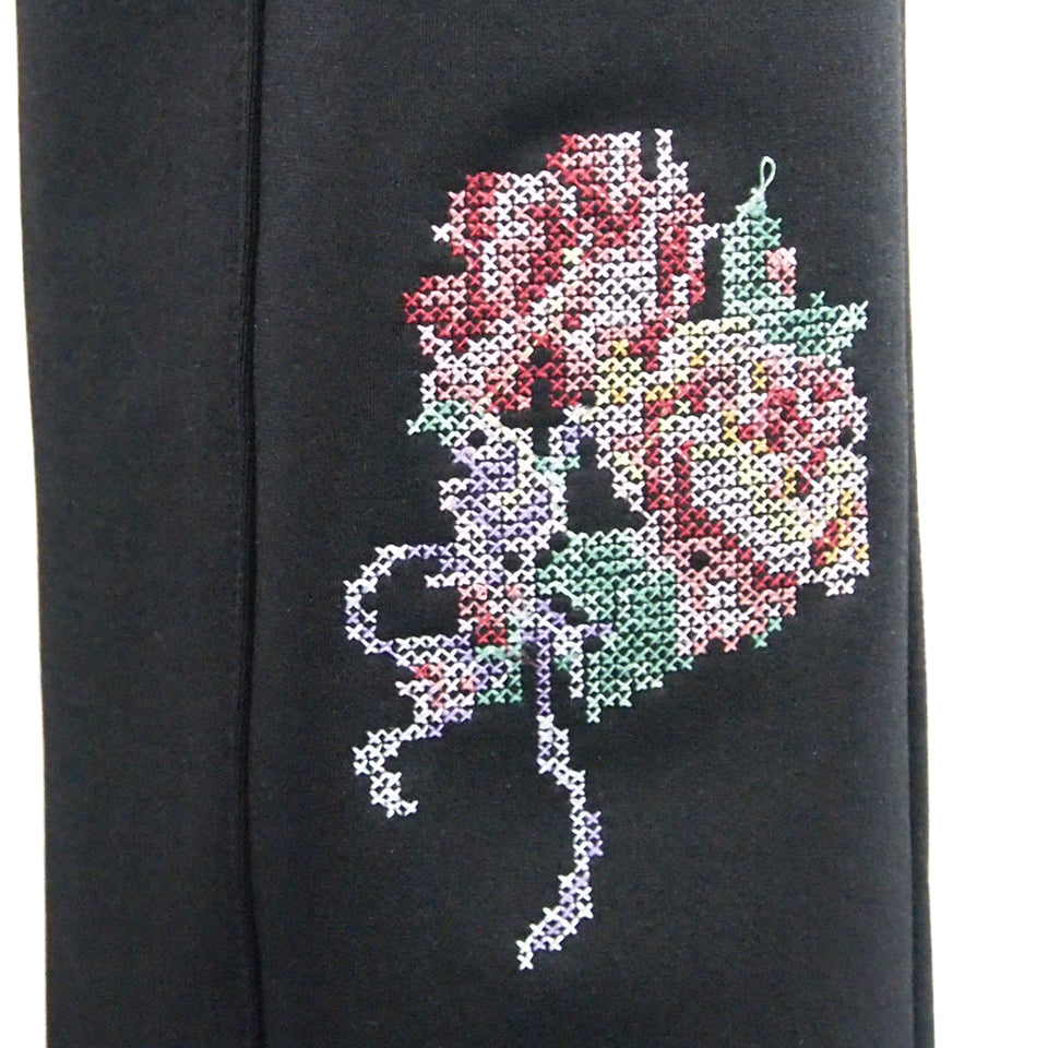 左足のひざ下に入ったローズ柄刺繍がポイント!